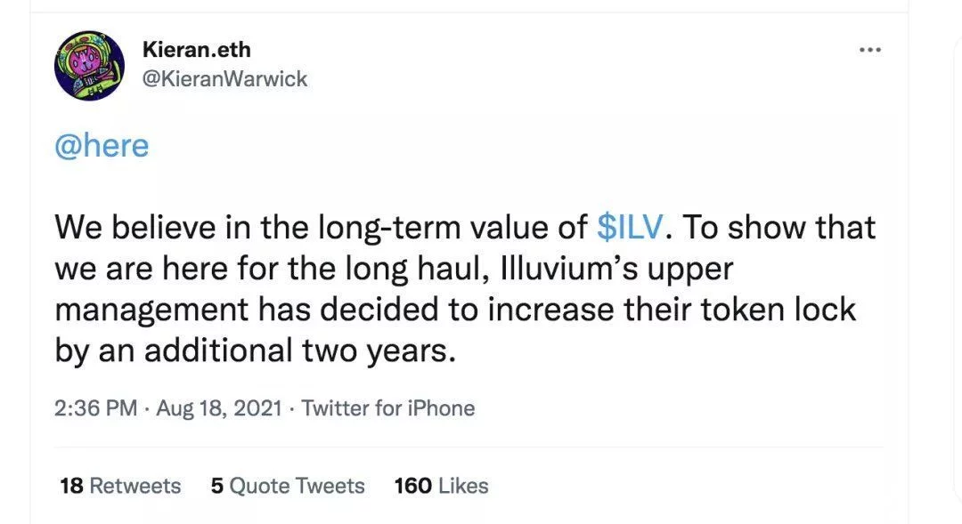 这为 illuvium 宇宙增加了一个全新的维度,同时也给团队研发vi设计设计专业公司增加了难度。发布日期已经推迟了几次,当前定于 2022 年第一季度。虽然目前看来这似乎并没有阻碍投资者对 $ILV 的热情(与 Sandbox 类似,因游戏发布被不断推迟),但如果团队迟迟不交付,执行力问题终究还是会浮上水面。