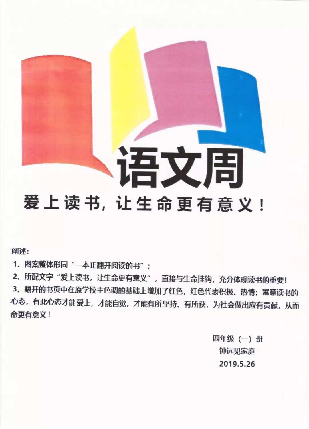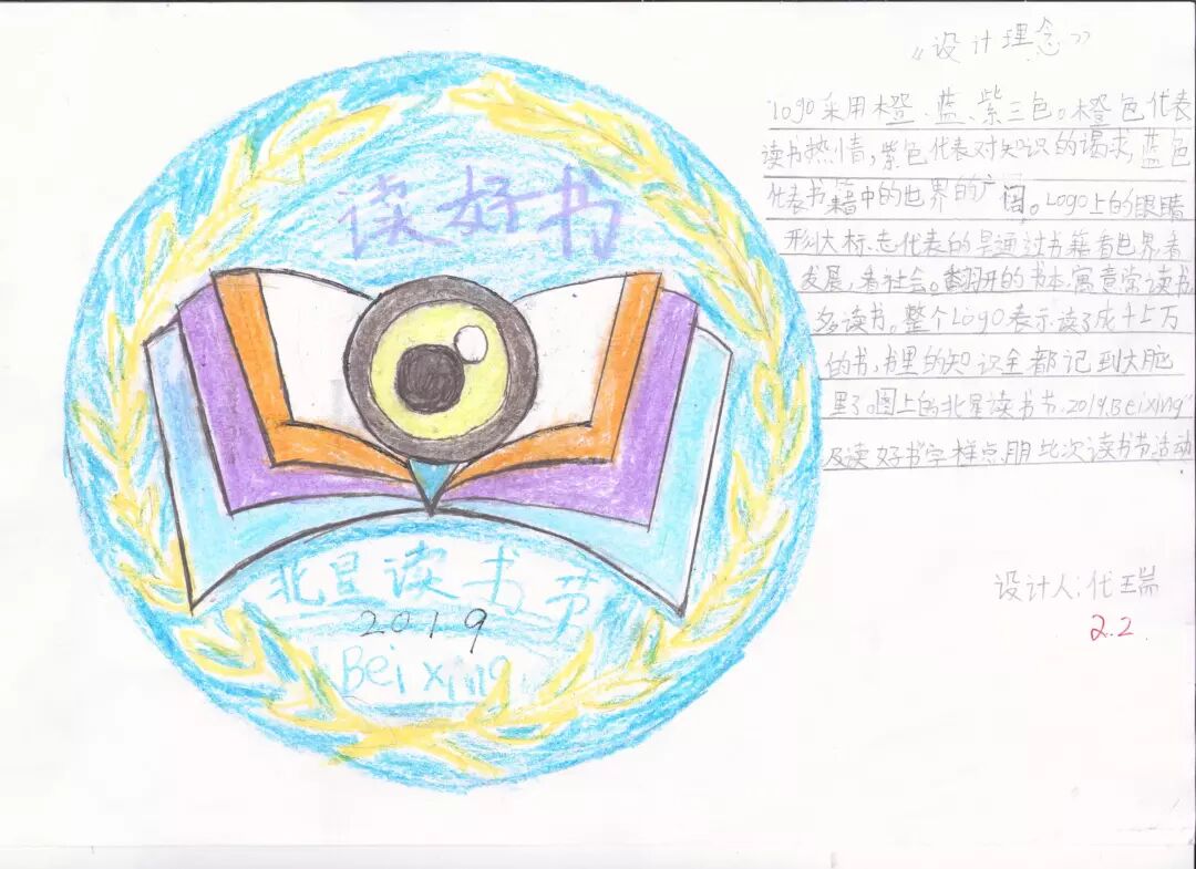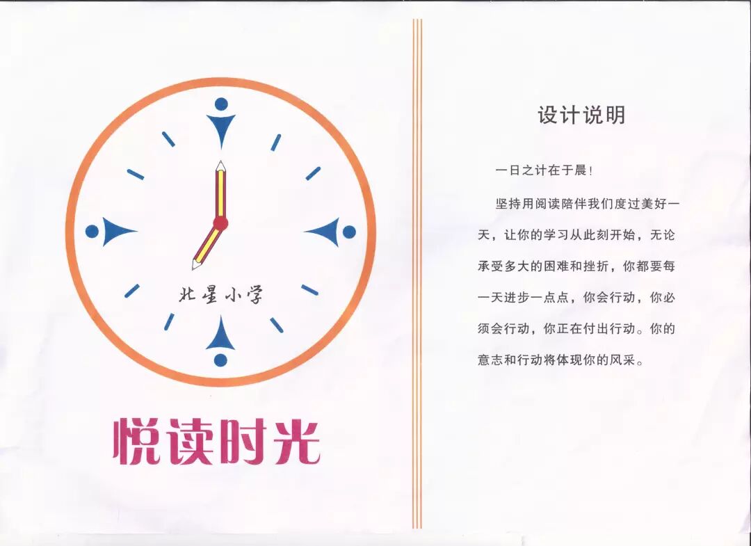 当我们翻开书本,开始阅读的时候,我们就可以收获良多。让阅读成为生命的自觉为理念。底部用艺术字,表达了每个小朋友都可以是阅读图书的好孩子。中间是一本打开的书,采用的是北星小学三种原色。上方是两个人,有三种意思:1阅读时,不但可以收获知识还可以收获朋友。2.在读书的道路上老师是我们的领路人。3.在家里,也需要家长陪着一起阅读。最后星星代表我们的学校,向着明亮那方,我们的梦想就从北星小学出发!