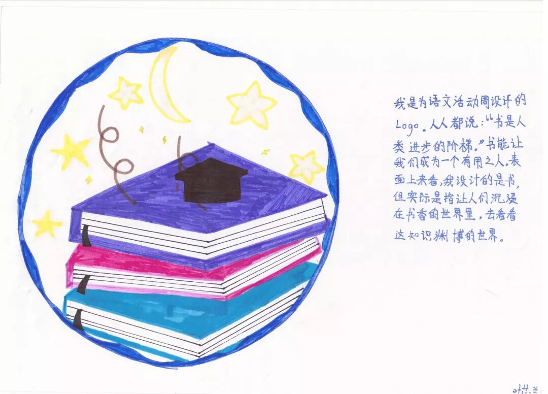 我是服装logo设计为语文活动周设计的Logo。人人都说:“书是人类进步的阶梯。”书能让我们成为一个有用之人。表面上来看,我设计的是书,但实际是指让人们沉浸在书香的世界里,去看看这知识渊博的世界。