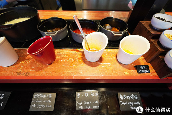来一碗肉臊十足的担担面,卖相口感都不输成都街头,对酒店早餐来说,这已经是极高的赞誉了。