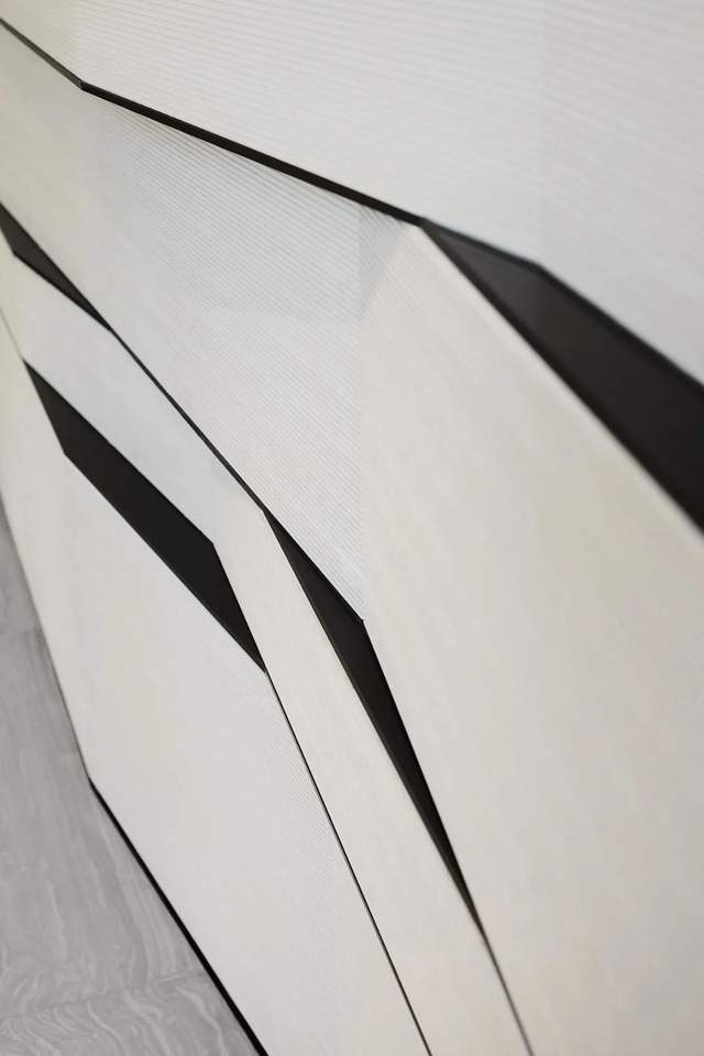 vi.设计一系列重复层叠的结构,于凹凸错落中,彰显墙面的对比感与变化性。同时关注线、面、体的多维设计哲学,以一种潇洒随性的走向,在韵律与肌理的不断叠加中构建另外一番奇境。