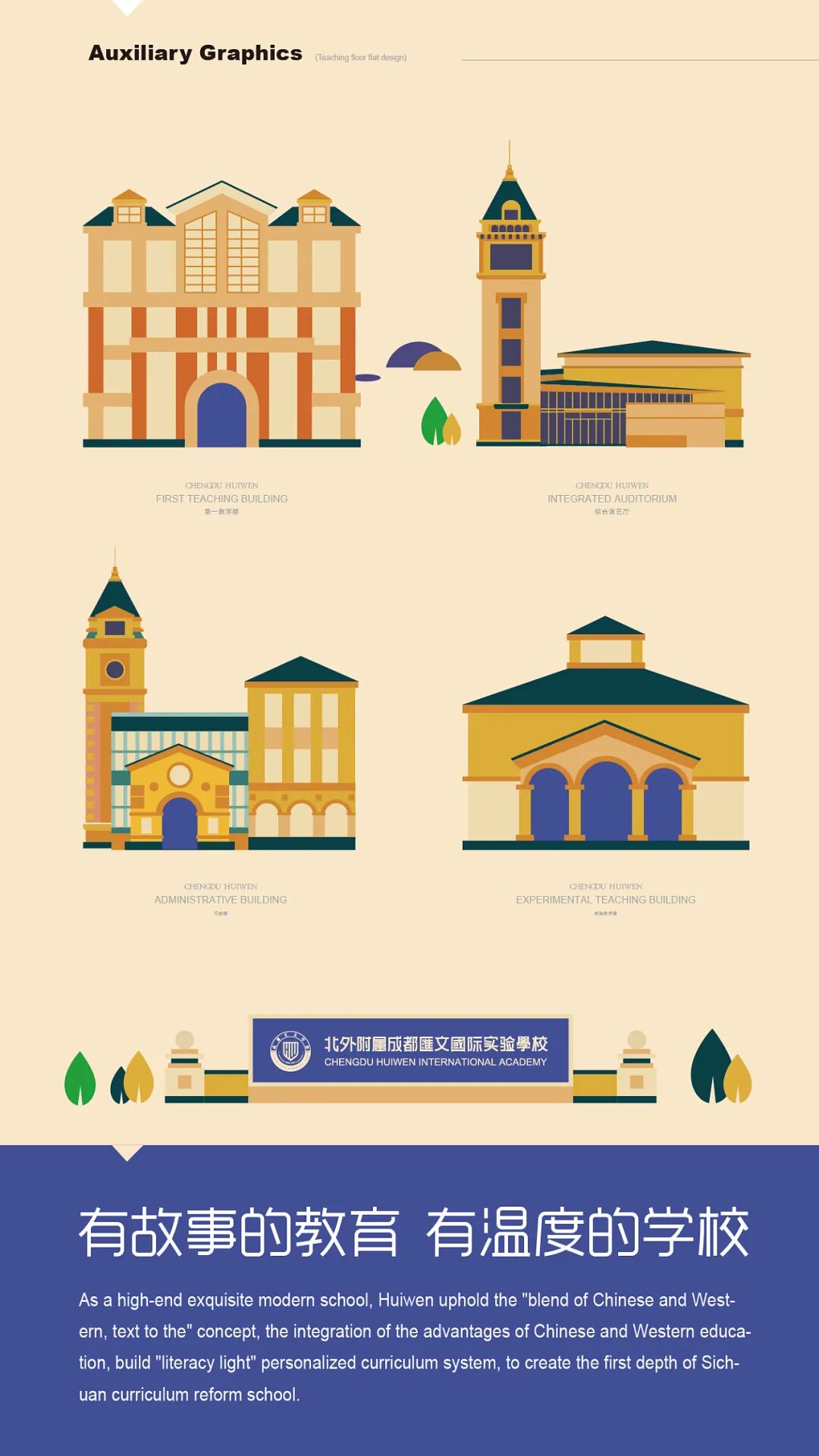 根据学校核心理念设计的VI标准色,是与学校文化体系最契合的,能让学校文化从精神文化到视觉传达实现高度契合和统一。二、学校地域文化。