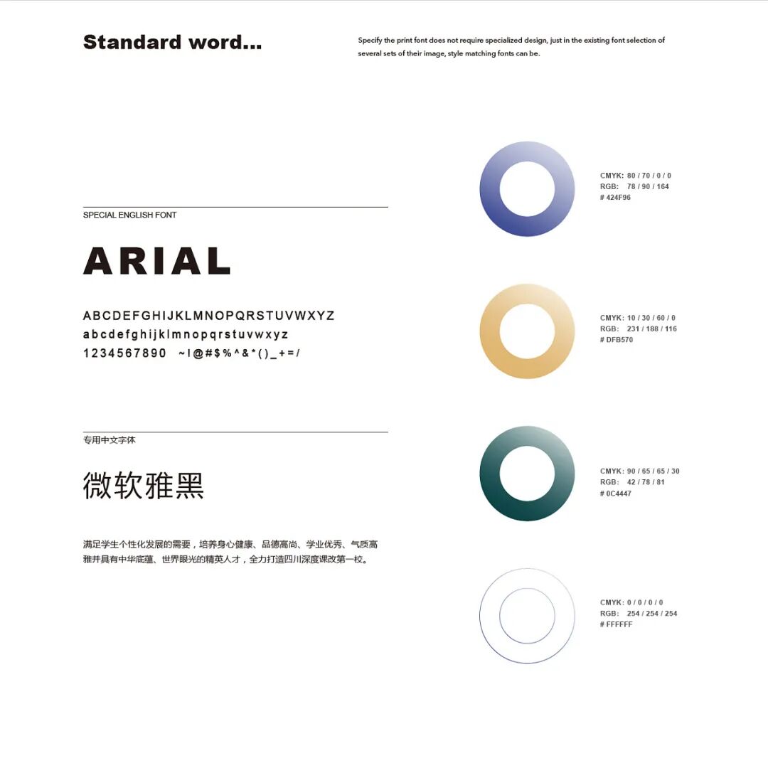 学校视觉识别系统(VIS)是对校园形象各种视觉因素的综合规划与设计,以有形的方式展示学校的办学理念和精神文化,以形成独特的学校形象。VI色彩的定义是整套VI体系中最核心的元素,贯穿于所有VI设计中。