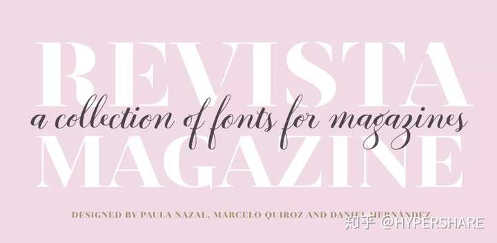 该字体由Paula Nazal Selaive,Marcelo Quiroz和DanielHernández设计,于2015年创建,是模板字体的绝佳范例。Revista融合了经典衬线的精致和模板字体风格的有效性。