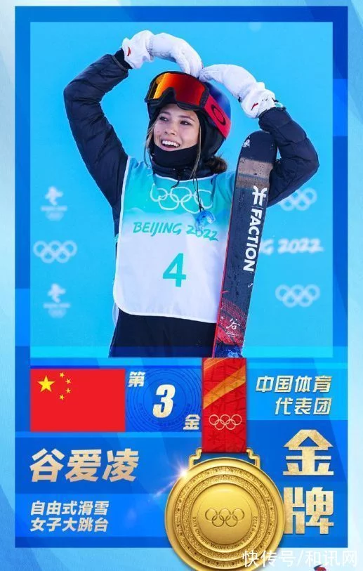 据悉,谷爱凌在自由式滑雪女子大跳台中跳出了1620,拿下冠军,这是她个人首个冬奥会奖牌。