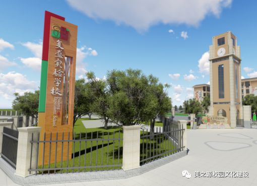 复盛实验学校校名导视,融合学校根雕特色文化,形成别具一格的户外导视系统。