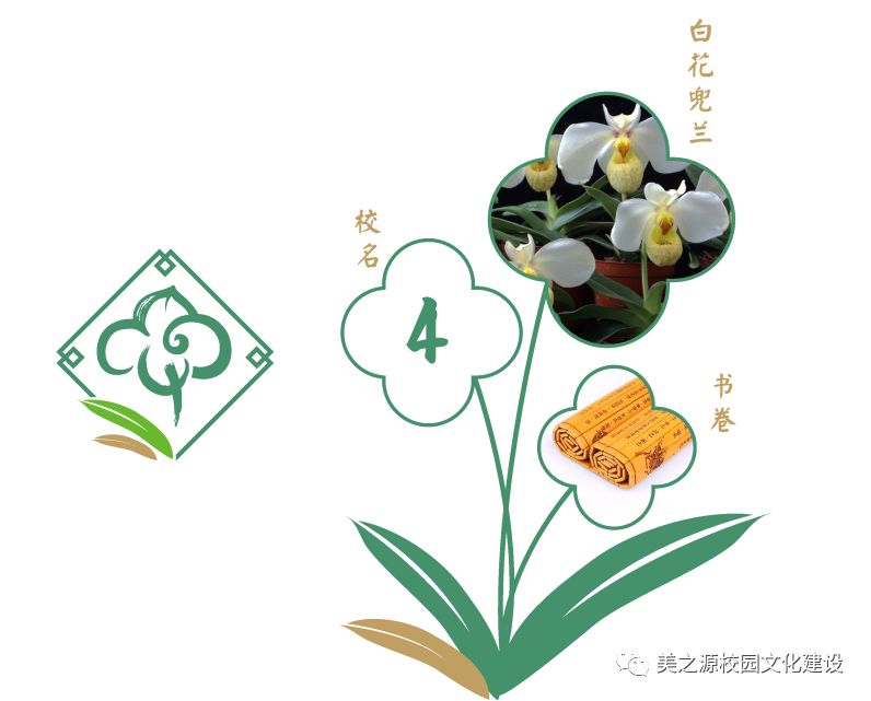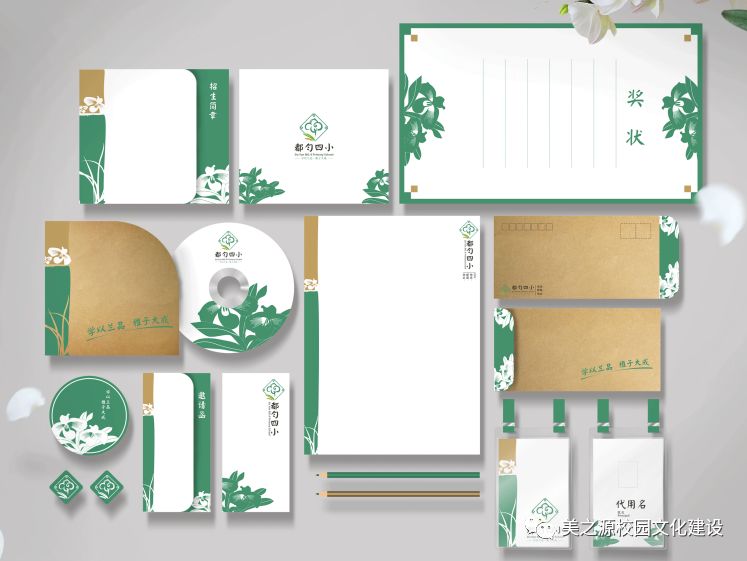 四小的整套VI系统清心脱俗,散发着兰花的芬芳。白花兜兰作为学校的精神图腾,深深植入师生心中,外散于举手投足的行为之间,文化在此刻已悄无声息的浸润着心灵。“每一个孩子都是珍贵的”的教育追求在VI应用中得到了升华。