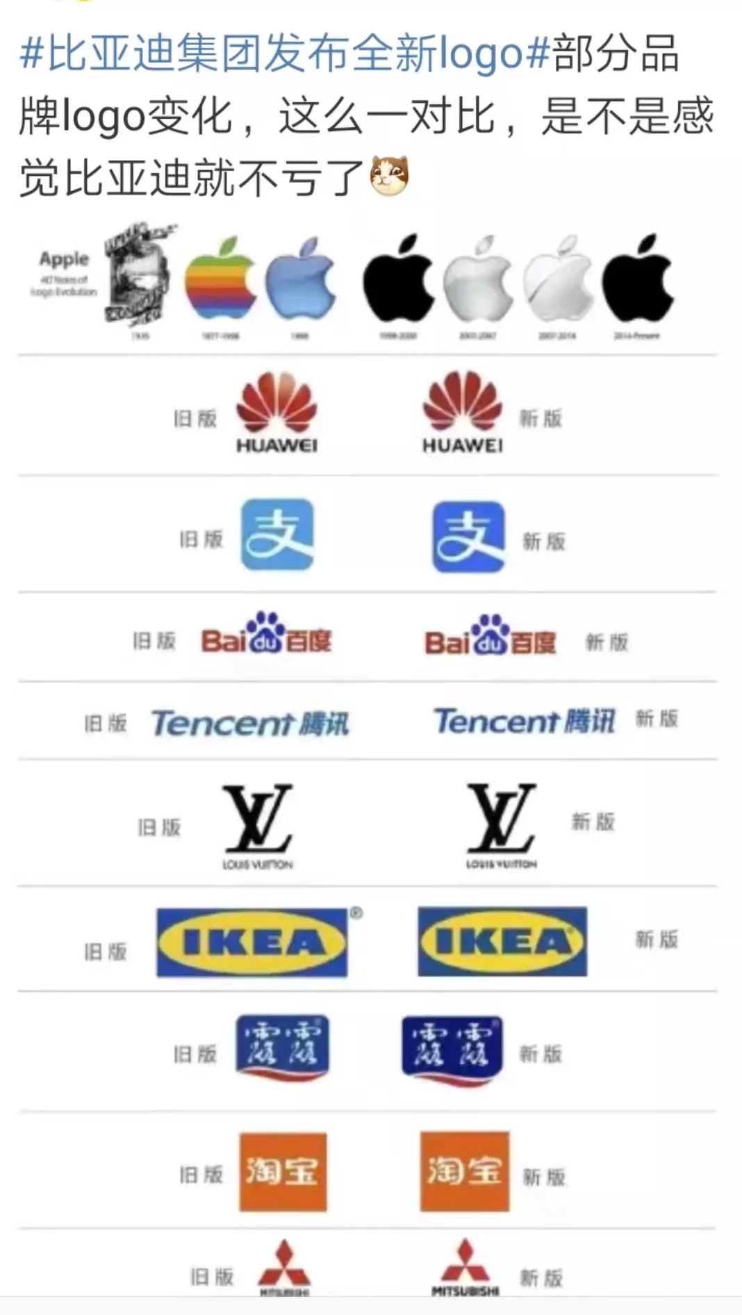 同时,还有网友列举了此前多个品牌发布的新标识,并调侃:“这么一对比,是不是感觉比亚迪不亏了。”