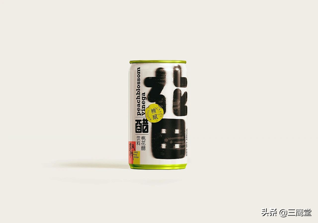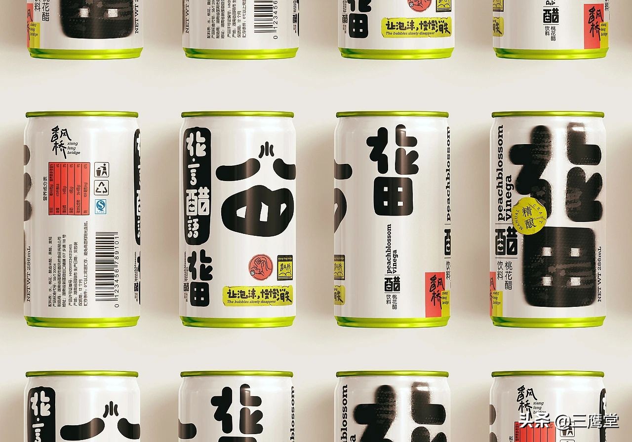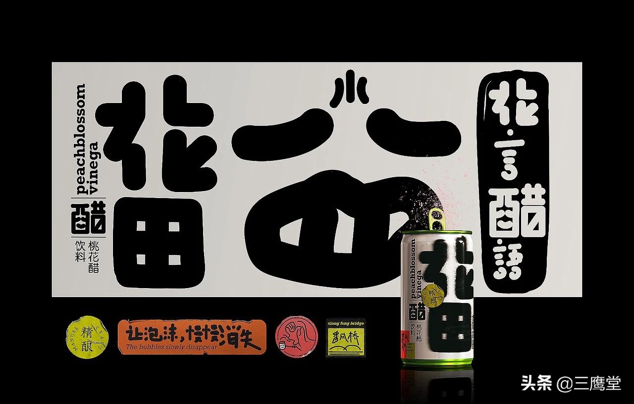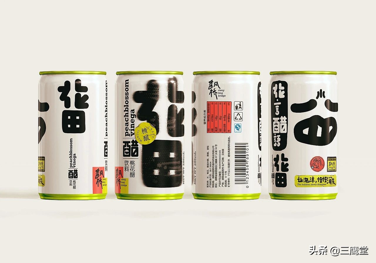 花田醋是用桃花和果醋再次发酵的跨界花醋饮料,饮用时浓密的酸味会伴随着清香倾入鼻腔,是一款口味独特且具有社交属性的产品。作为一款面向年轻消费群体的饮料,花田醋以朗朗上口的产品名和夸张、简单的视觉形象与消费者强关联。