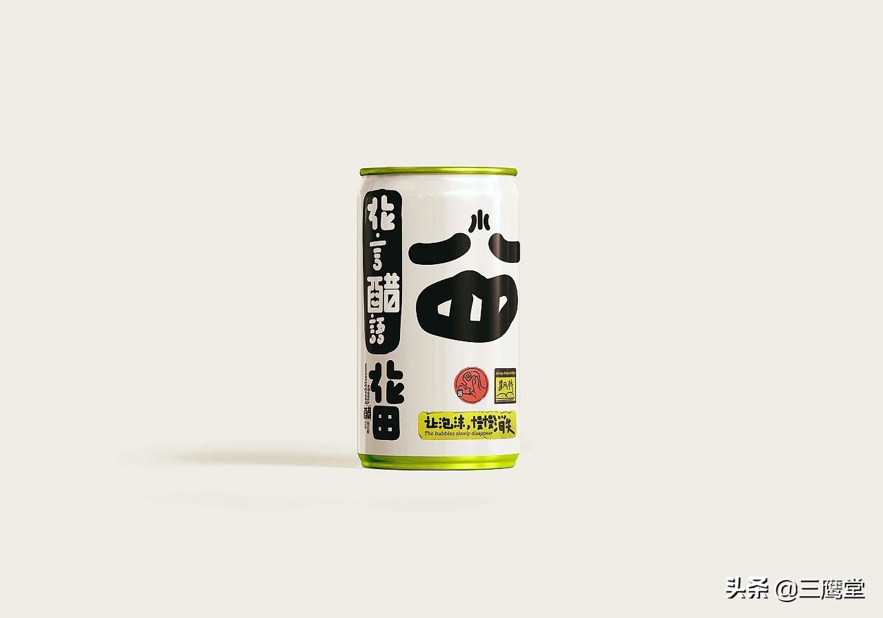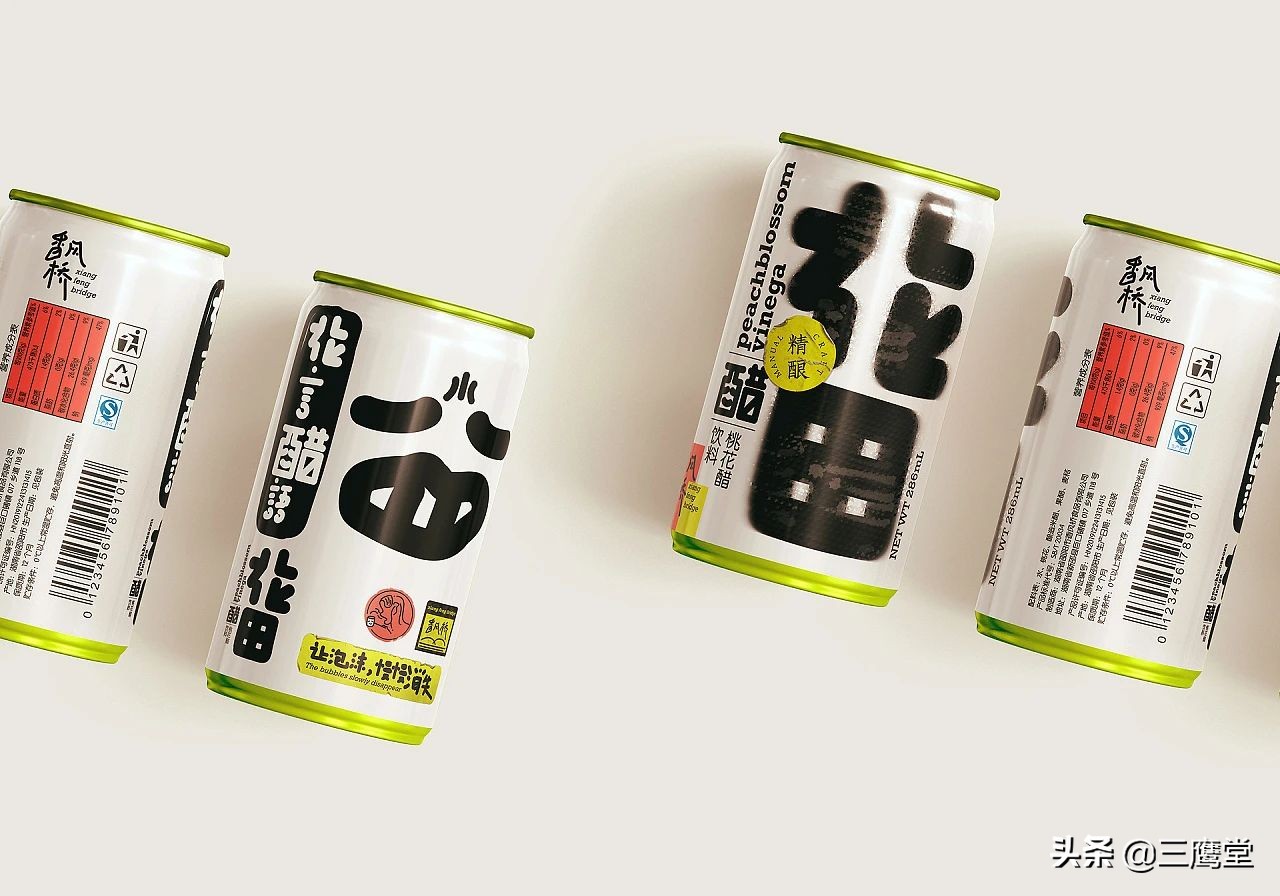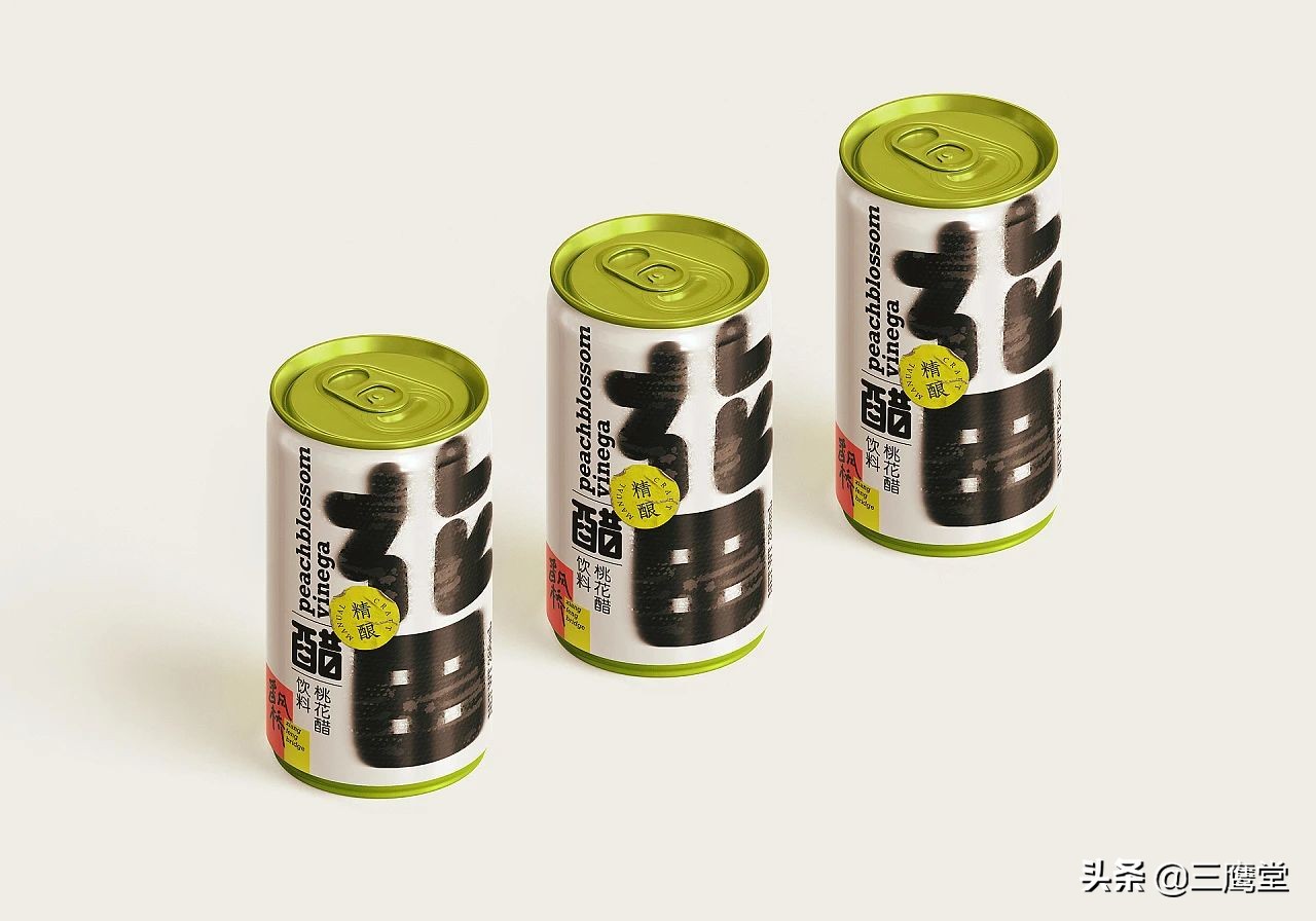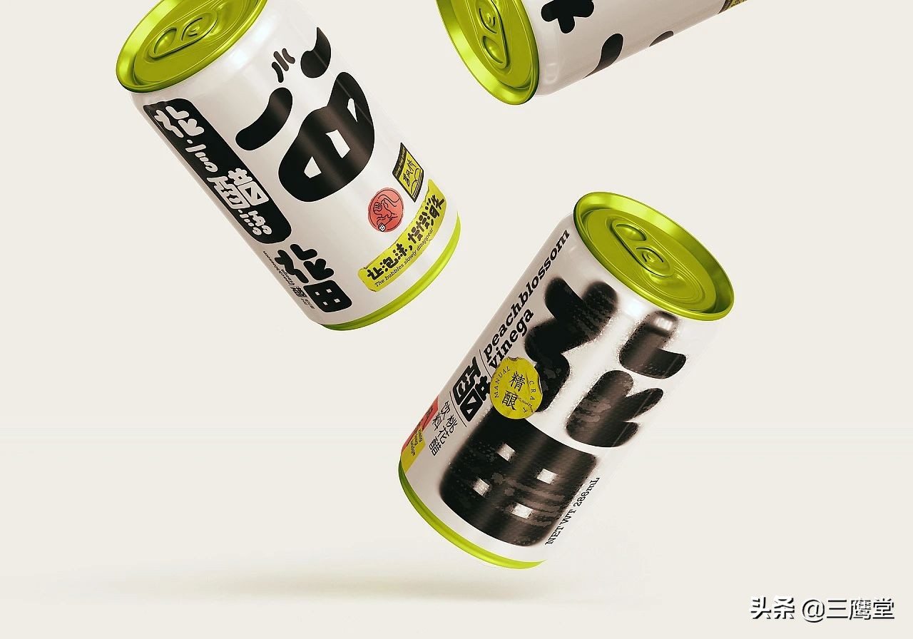 花田醋是用桃花和果醋再次发酵的跨界花醋饮料,饮用时浓密的酸味会伴随着清香倾入鼻腔,是一款口味独特且具有社交属性的产品。作为一款面向年轻消费群体的饮料,花田醋以朗朗上口的产品名和夸张、简单的视觉形象与消费者强关联。