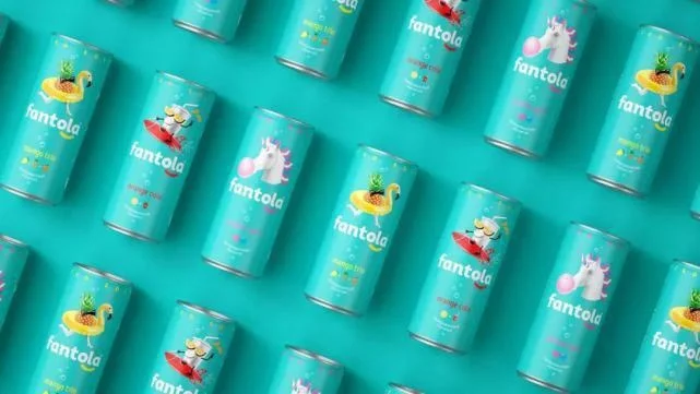 为了在苏打饮料领域赢得年轻观众的注意,你不仅需要做一个现代的设计,还要引起一种“哇”的效果。这种解决方案就是Fantola的设计,这是我们根据B计划开发的——我们放弃了客户提出的模仿策略,开发了一个独特的品牌概念。我们在设计中使用了非分类的蒂芙尼色彩,吸引了人们的注意力,在架子上创造了一个亮点,也使用了目标受众通常视野中的元素——表情、贴纸和社交网络中的面具来创造独特的人物。