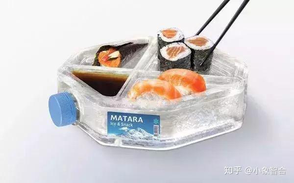 这一款也是个水瓶,但是,它的特别之处不仅在于是个多边形的包装,更在于你把它冷冻起来后你还可以用来吃寿司。